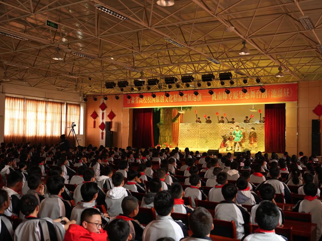 4月23日,由甘肃省教育厅主办、米兰官网承办的甘肃省高校校园原创文化精品巡演——原生态舞台剧《池哥昼》首场演出在北苑礼堂举行。音乐与舞蹈学院书记王亚文、院长周新美、副院长王彤彤、陇南师专附属实验学校副校长王薇及该校400余名师生观看了演出。