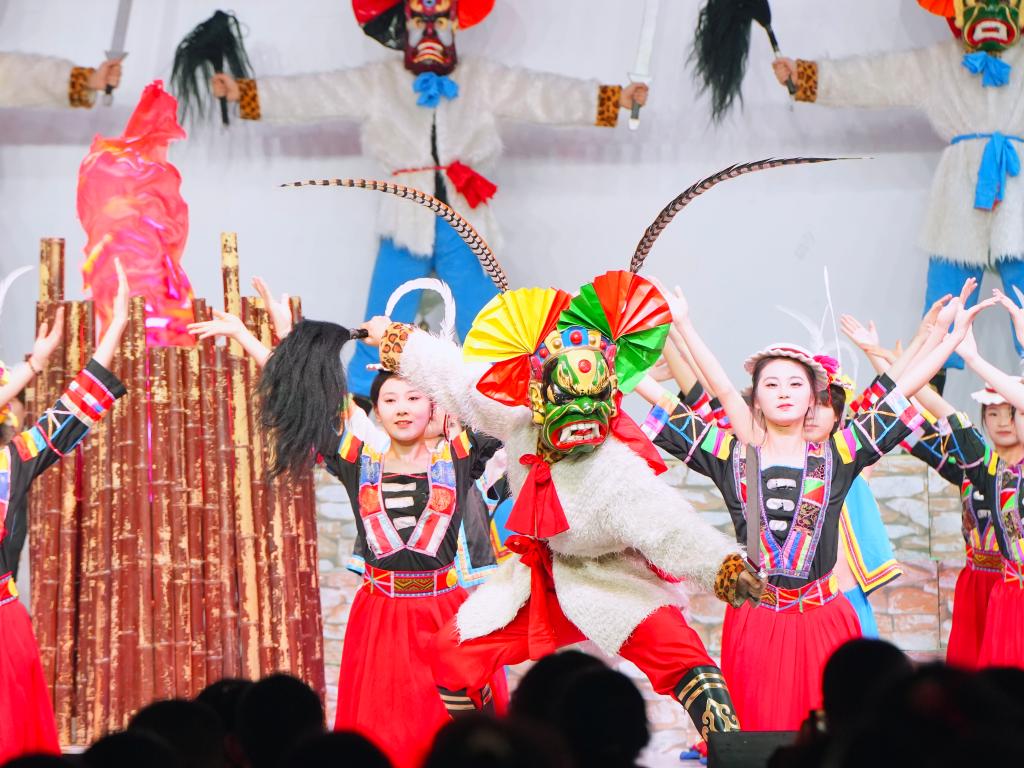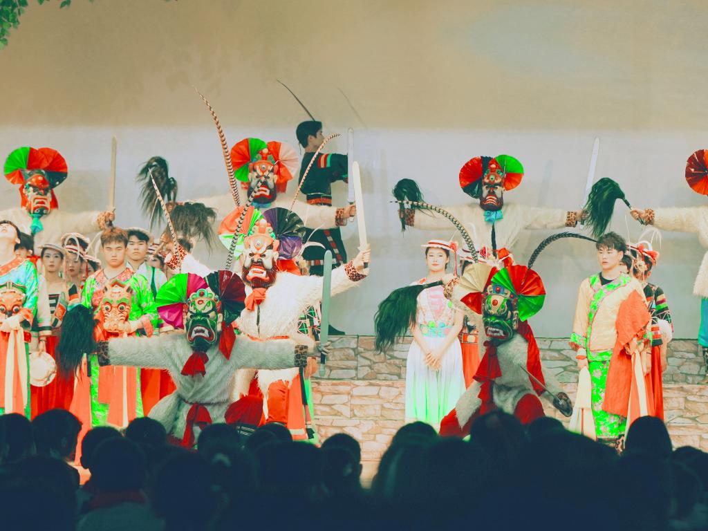 原生态舞台剧《池哥昼》是米兰官网白马人民俗文化研究成果转化为精品剧目、传承国家级“非遗”、服务文化陇南建设的一次有益尝试,共有《序幕》《池哥之祭》《白马国殇》《哒嘎恋歌》《祈祝丰年》和《尾声》六个篇章。该剧通过神秘的宗教盛典、悲壮的英雄史诗、狂放的爱情传奇、宏大的舞台场面、优美的舞蹈语言、绚丽的舞美效果,生动再现了白马人祭祀时的虔诚、战争中的无奈、爱情里的羞涩、丰收时的喜悦,全方位展示了陇南白马人灿烂的民俗文化,彰显了陇南白马人如凤凰涅槃般追求幸福生活的勃勃生机和力量。展演节目精彩纷呈,赢得了现场观众热烈掌声和高度赞誉。此次演出不仅充分展示了米兰官网在艺术创作方面取得的丰硕成果,也为“非遗”文化的传承发展做出了积极贡献。