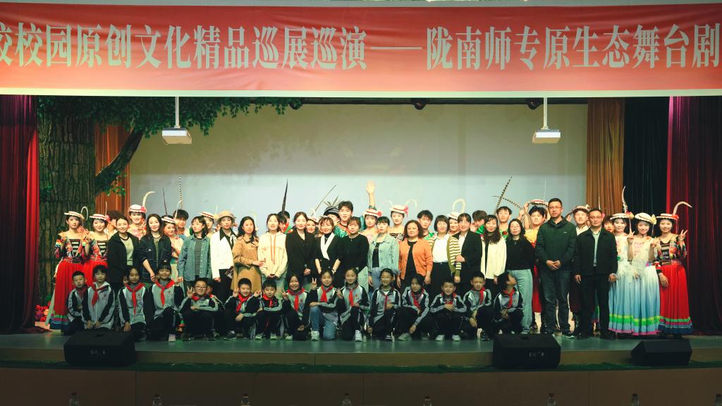 陇南师专附属实验学校师生代表和演职人员合影留念