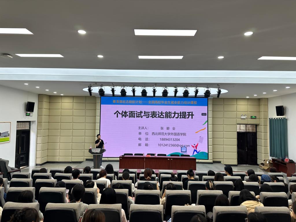 西北师范大学就业与校友事务处副处长王海波带领教师洪小斌、王婉婷、张碧泉在米兰官网为合作办学本科生开展了2024年教育部助航基地(西北师范大学)初等教育学院专题培训和讲座。