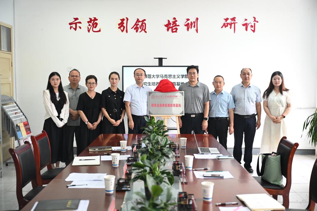 史小宁与石明代表两校共同为西北师范大学马克思主义学院研究生培养实践教育基地揭牌。