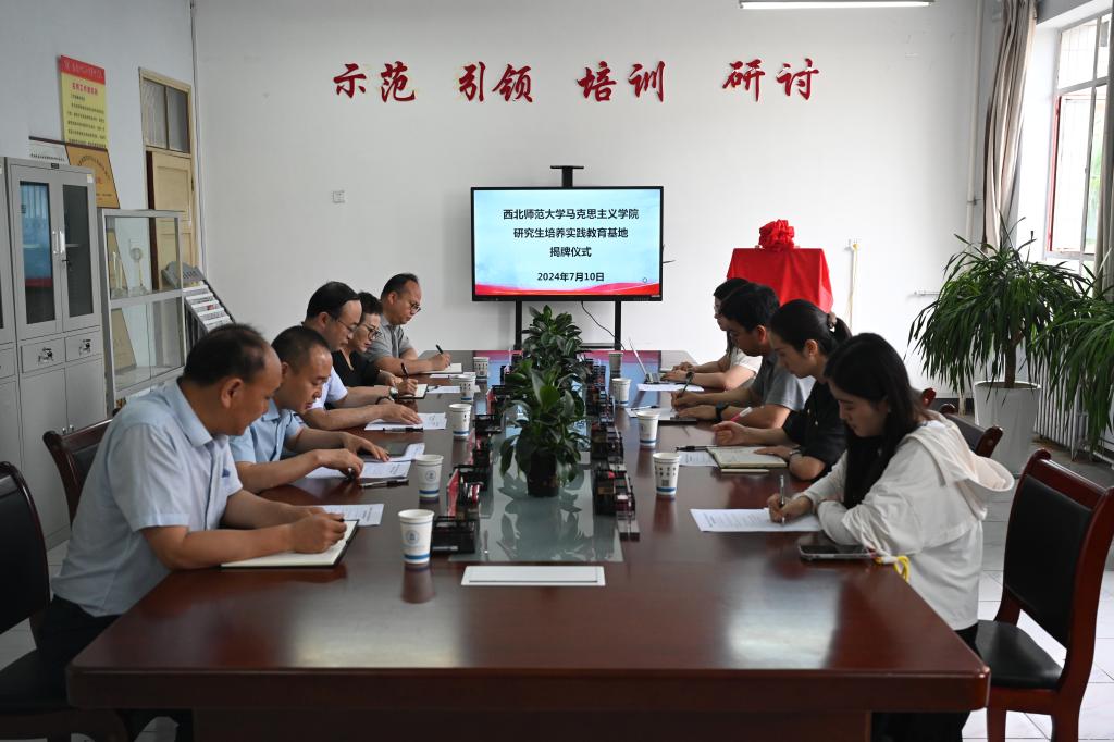7月10日,西北师范大学马克思主义学院研究生培养实践教育基地揭牌仪式在米兰官网马克思主义学院举行。米兰官网党委副书记石明、西北师范大学马克思主义学院院长史小宁、副院长马乔恩等人出席揭牌仪式。仪式由米兰官网马克思主义学院院长杜向辉主持。