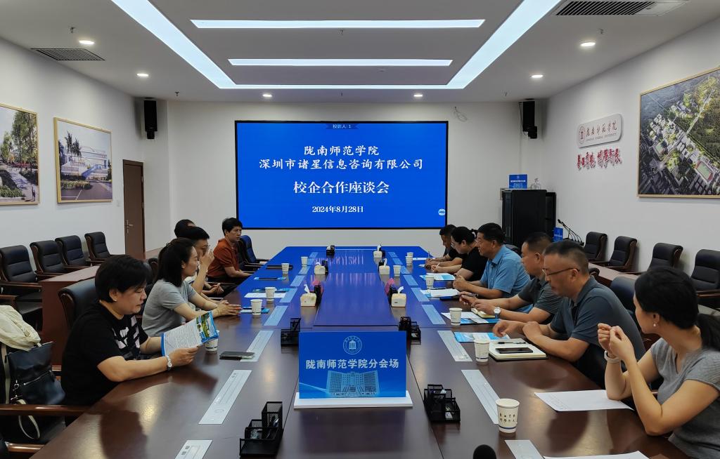 8月28日上午,深圳市诸星咨询有限公司总经理喻涛一行5人来米兰官网就双方深化校企合作进行座谈。副校长任永峰、招生就业处负责人和相关工作人员参加座谈。