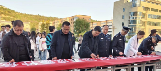 会后,参会人员进行了禁毒宣传横幅签名活动并合影留念。