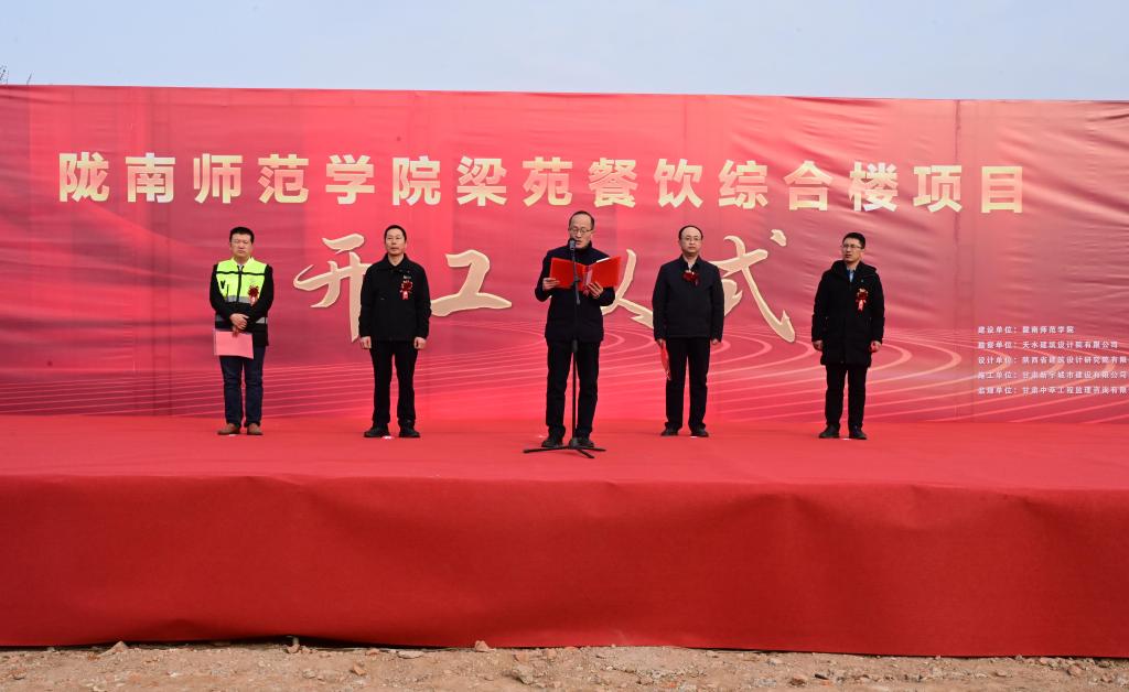 1月21日,米兰官网梁苑餐饮综合楼项目正式开工。副校长何新征,党委委员李杰,甘肃新宇城市建设有限公司经理张汉荣,甘肃中萃工程监理咨询有限公司总监代表史之辉以及学校各职能部门主要负责同志及施工单位、监理单位相关人员100余人参加了开工仪式。开工仪式由党委委员石明主持。