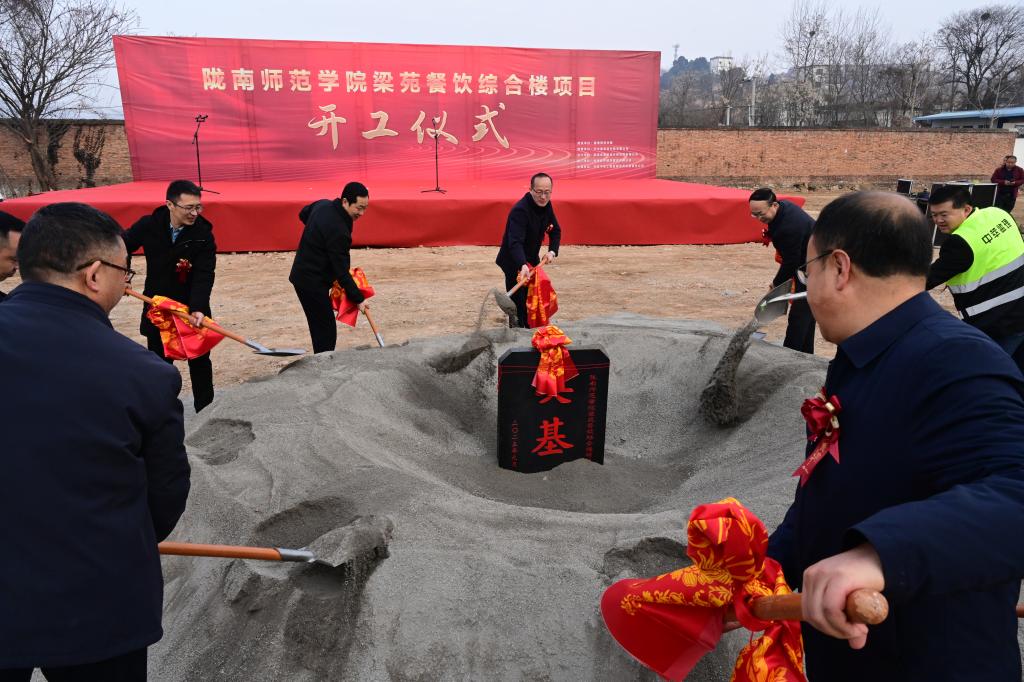 仪式上,何新征对梁苑餐饮综合楼项目开工表示热烈的祝贺,对支持项目建设的各级领导表示感谢。他要求,承建单位、监理单位和学校相关部门要强化安全责任、筑牢安全防线,强化保障服务、优化建设环境,把握时间节点、坚守质量底线,高标准、高质量、高效率加快项目建设进度,全力以赴推动项目尽早建成投入使用,造福全校师生。