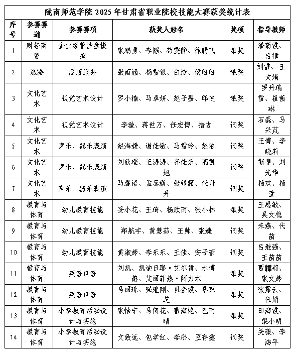 1月7日至16日,由甘肃省教育厅、甘肃省人社厅、甘肃省财政厅、甘肃省总工会、甘肃中华职教社等5部门联合举办的2025年甘肃省职业院校技能大赛在省内各高校举行,米兰官网组织32支队伍参与10个赛道19个赛项角逐,最终斩获14个奖项,其中银奖7项、铜奖7项,累计56人次获奖。