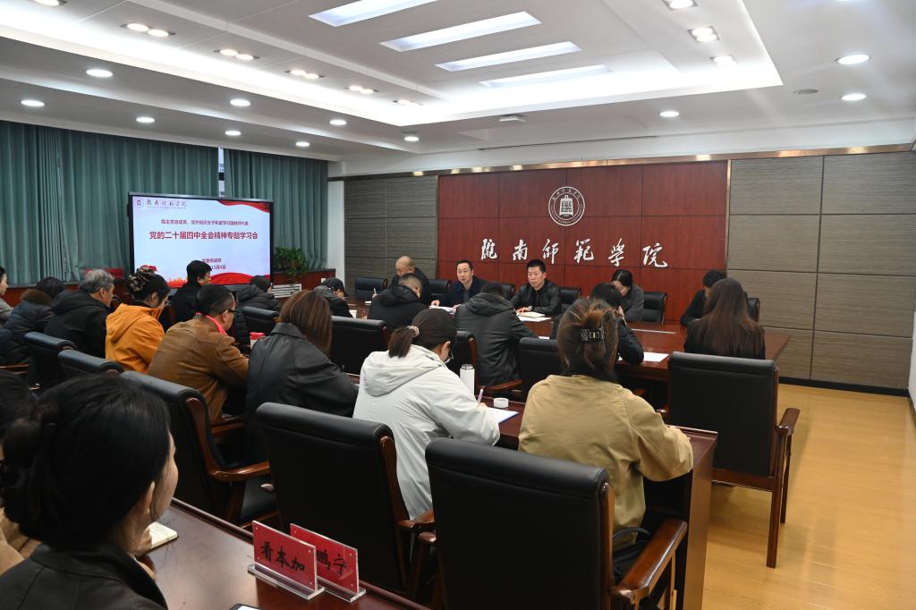 根据学校党委安排,11月4日下午,党委统战部组织民主党派成员、党外知识分子和留学归国教师代表学习党的二十届四中全会精神。民进ac米兰官网中文网站支部、民盟ac米兰官网中文网站总支、九三学社徽成支社、无党派人士、留学归国教师和统战部等40余人参加了会议。会议由党委统战部常务副部长张益斌主持。