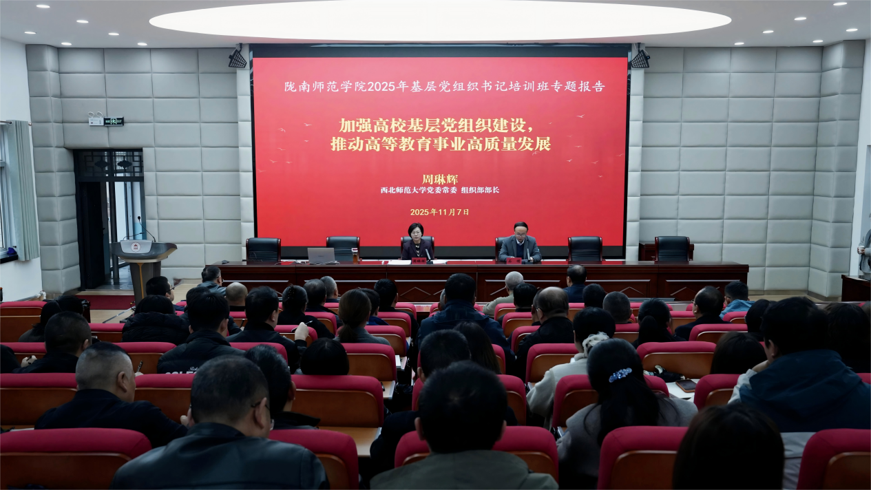 11月7日上午,米兰官网举办2025年基层党组织书记培训班第三场专题报告会暨第4期干部大讲堂。西北师范大学党委常委、组织部部长周琳辉应邀作了题为“加强高校基层党组织建设推动高等教育事业高质量发展”的专题辅导报告。党委委员、组织部部长石明主持报告会,各学院党总支书记、二级学院基层党组织书记培训班学员、机关党支部党员代表共60人聆听了专题辅导报告。