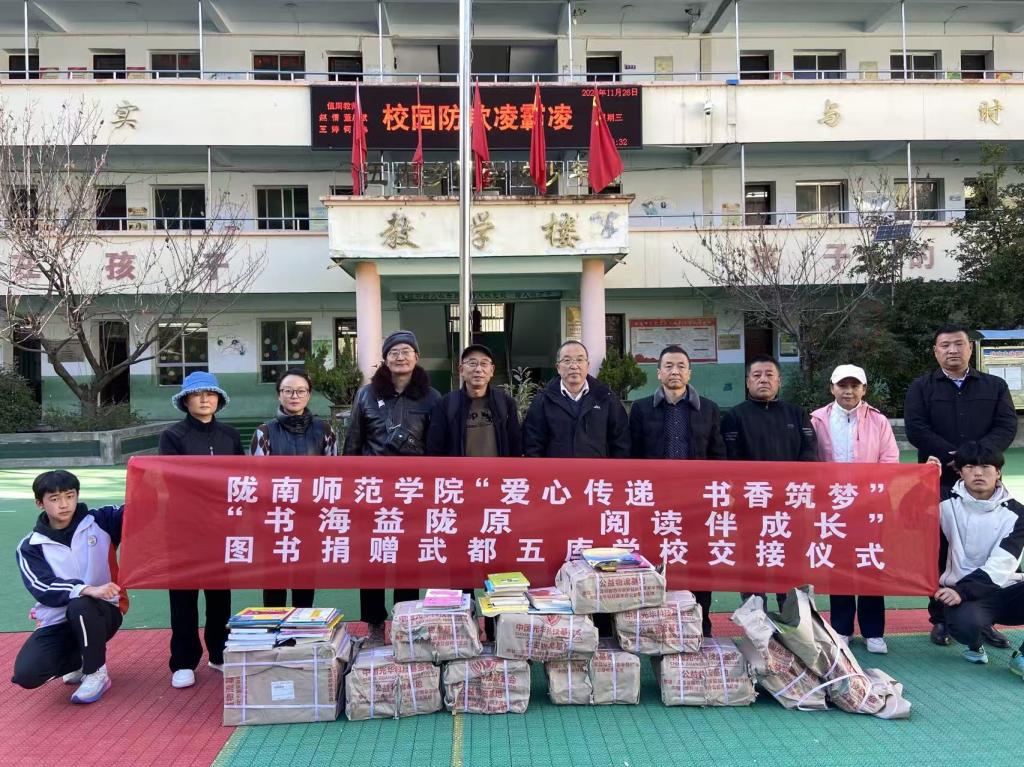 近日,米兰官网联合中国光华科技基金会在武都区五库九年制学校举行图书及教学用具捐赠交接仪式。米兰官网驻村帮扶工作队全体队员,五库九年制学校校长董明芳、副校长李小虎以及5名实习生和该校全体师生参加了捐赠交接仪式。