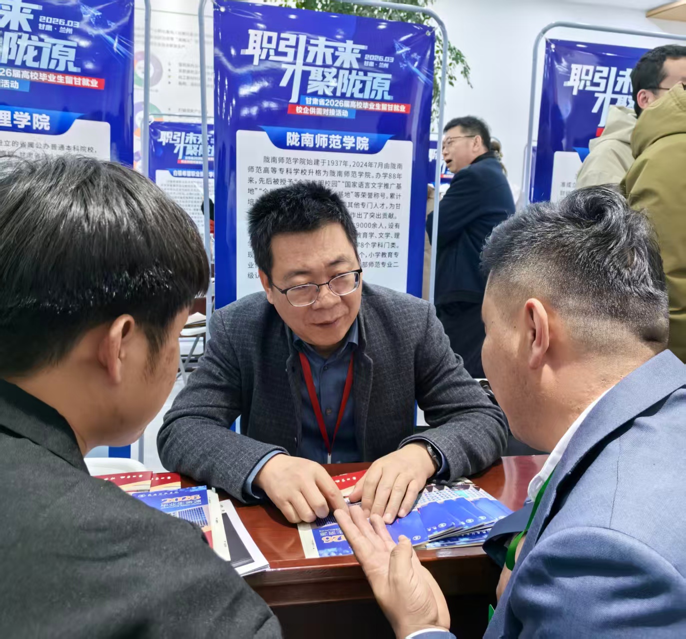 3月4日,由省教育厅主办的“职引未来·才聚陇原”全省2026届高校毕业生留甘就业校企供需对接活动在兰州新区化工园区举行。省委教育工委委员、省教育厅副厅长邓伟出席活动启动仪式并讲话。副校长李开明带领就业处相关负责人参加活动,与参会的100余家企事业单位负责人深入交流,详细了解用人单位人才需求、薪资待遇及发展前景。