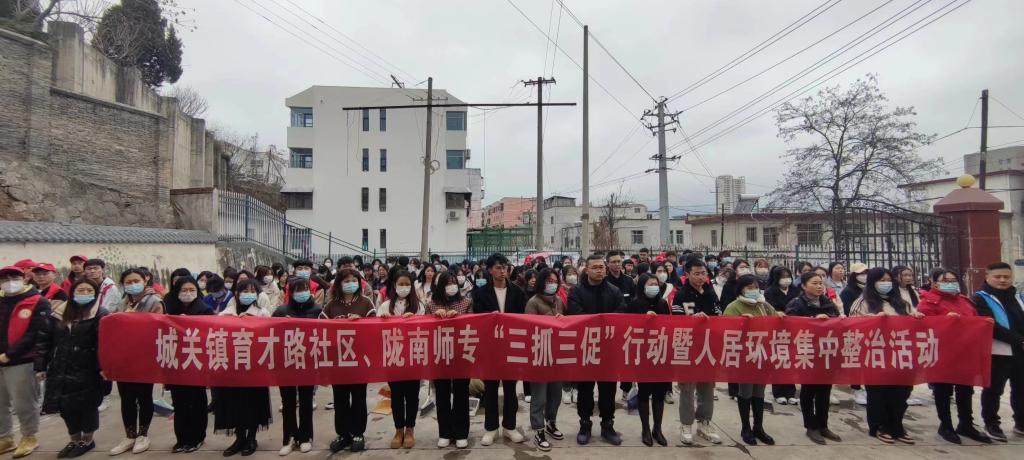 3月10日,成县城关镇育才路社区党支部与米兰官网学生党员先锋队共80余人联合开展了“三抓三促”行动暨人居环境集中整治活动。