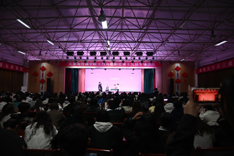 11月14日晚,文学与传媒学院在北校区礼堂开展火烈鸟话剧社第十九届专场演出。校团委、学生处负责人,文学与传媒学院领导班子,其他学院老师,各社团学生代表及文学与传媒学院23级全体学生现场观看了演出。
