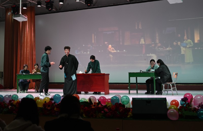 演出在四位主持人精彩的开场白中正式开始。毛悦、李米带来的相声表演《相声新时代》用幽默诙谐的语言以及各种网络热梗演绎了网络高速发展的社会背景下人们盲目追求“流量”的病态思维;传统唱词《莽撞人》的演绎淋漓尽致的展现了传统文化的魅力,赢得现场阵阵掌声;冯国新、康敏、蒲婷婷等人带来的话剧《孔乙己》重现经典;龙洋、张鹏乐等人带来的《山楂树之恋》将观众的思绪拉回了那个纯粹的年代,将当时人们纯粹与真诚的爱情展现的淋漓尽致。