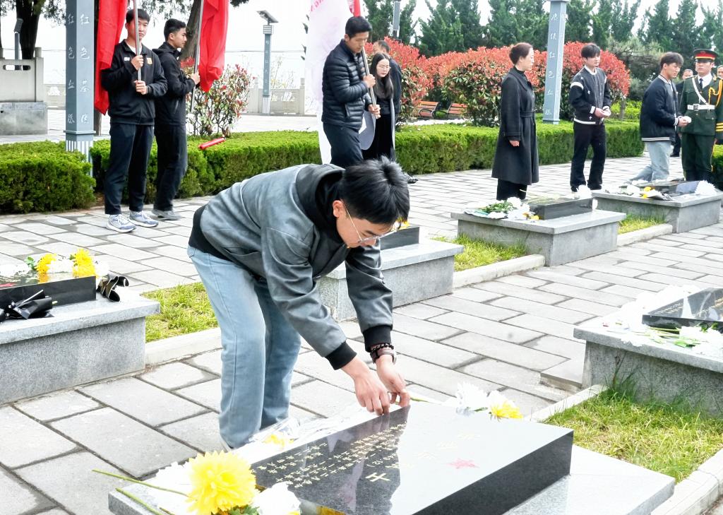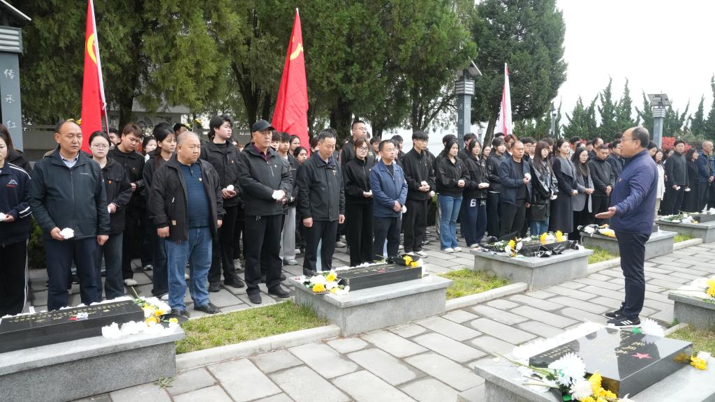 学生处负责人宣讲了烈士事迹,号召同学们学习他们的崇高品德和为人民利益不懈奋斗的精神。师生们向烈士墓敬献鲜花,清扫陵园、擦拭墓碑,表达对革命英雄的崇高敬意。
