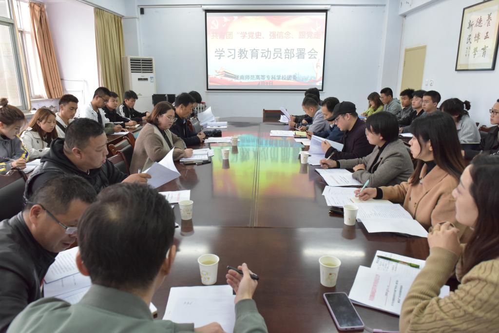 会上传达了校党委书记余学军在学校党史学习教育动员大会上的讲话精神,宣读了《关于在全校团员青年中开展“学党史、强信念、跟党走”学习宣传教育的通知》,详细解读了学习教育的具体内容。