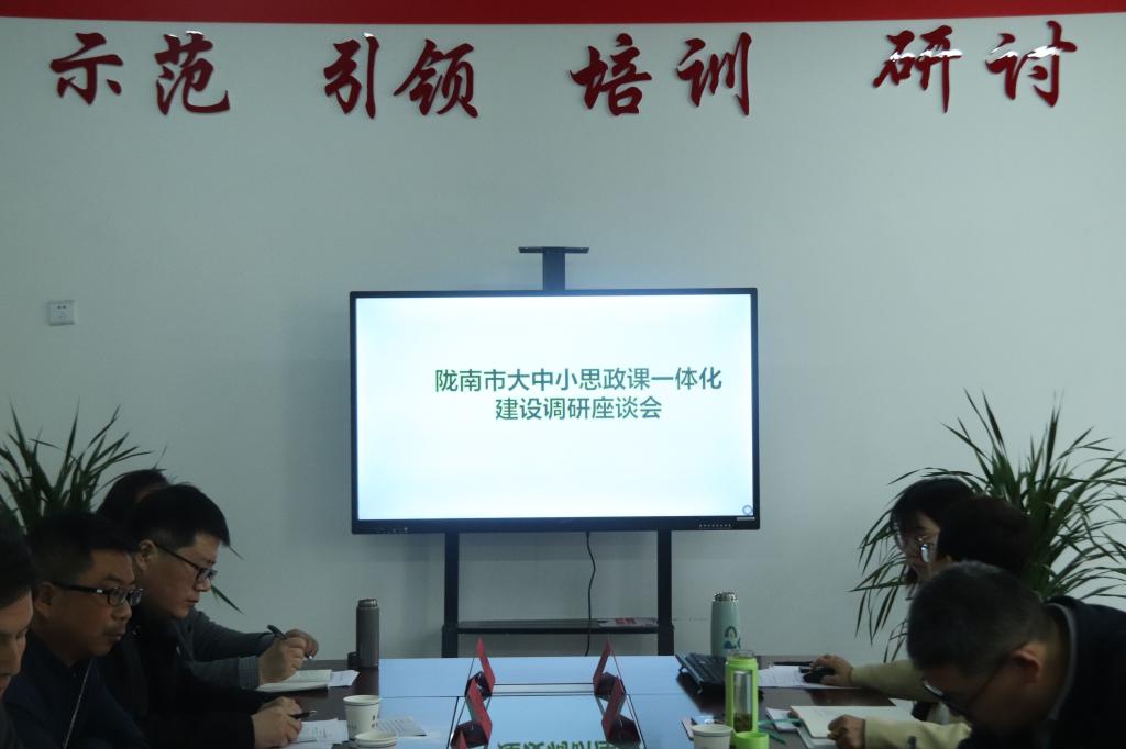 最后,陇南市部分大中小学思政课教师代表进行了座谈交流。他们围绕大中小学思政课一体化建设的目标设定、机制构建、资源共享、标准确立、师资培养、质量评价等问题展开了深入讨论。大家结合各自学校的实际情况,提出了大中小学思政课一体化建设的具体路径,即树立系统思维,通过目标引领、问题导向、榜样示范和成果应用,实现流程优化、资源整合、主题明确、方向集中、管理规范,努力打造大中小学思政课一体化建设的价值链,以促进一体化建设落细落小落实,推动学校思政教育常态化开展。(文/陈思思 图/王 乾)