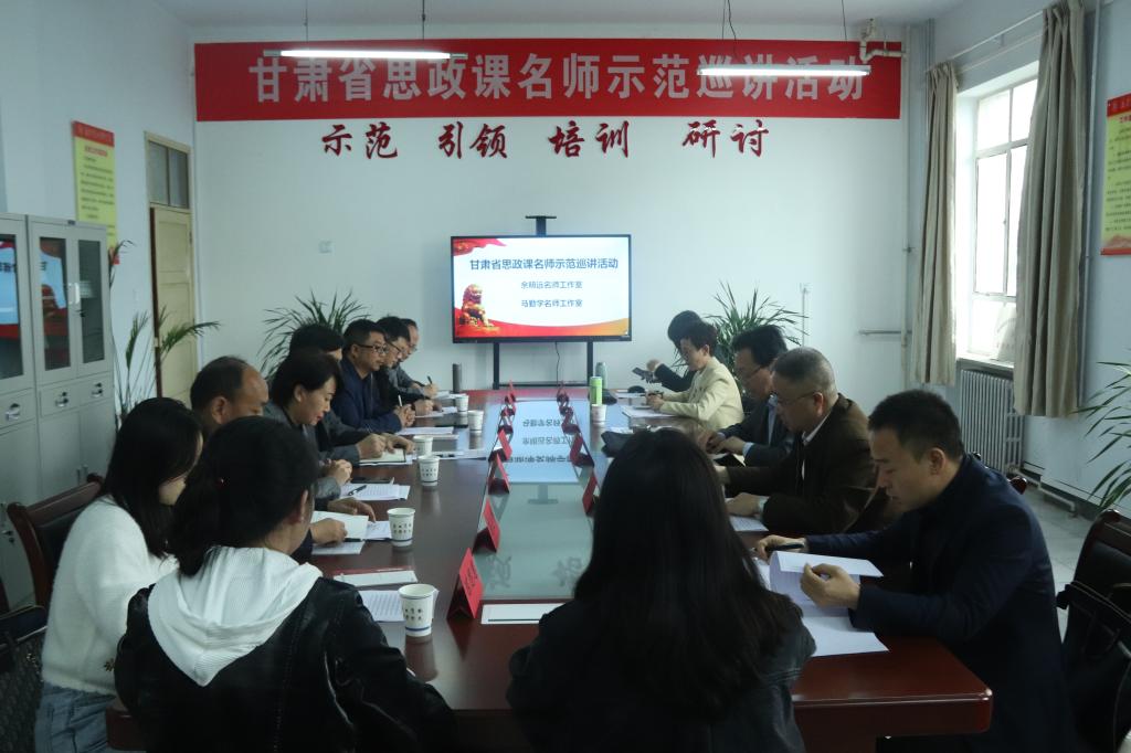 按照甘肃省教育工委关于在全省教育系统持续深入推进以“党史”为重点的“四史”学习教育,充分发挥甘肃省大中小学思政课一体化建设指导委员会专家和甘肃省思政课名师的示范引领作用要求,4月27日,甘肃省思政课名师示范巡讲团第9组骨干成员,余明远名师工作室和马勤学名师工作室骨干成员在米兰官网开展甘肃省思政课名师示范巡讲活动。米兰官网副校长王胜青教授出席会议,成县教研室副主任张国义,甘肃省大中小思政课一体化建设分教指委委员、陇南师专附属实验学校副校长王慧聪,甘肃省大中小思政课一体化建设分教指委委员王丰元,陇南师专教务处处长杨建东教授,甘肃省思政课名师工作室主持人、马克思主义学院院长马勤学教授,甘肃省大中小思政课一-体化建设教指委委员,专家组副主任委员,马克思主义学院副院长袁滢副教授以及名师工作室骨干成员共计20余人参加会议。此次示范巡讲活动以专题讲座、示范教学和座谈会相结合的方式开展。会议由马勤学主持,他就之前面向陇南市教育主管部门和部分中小学教师网上发放调研问卷的情况作了说明。