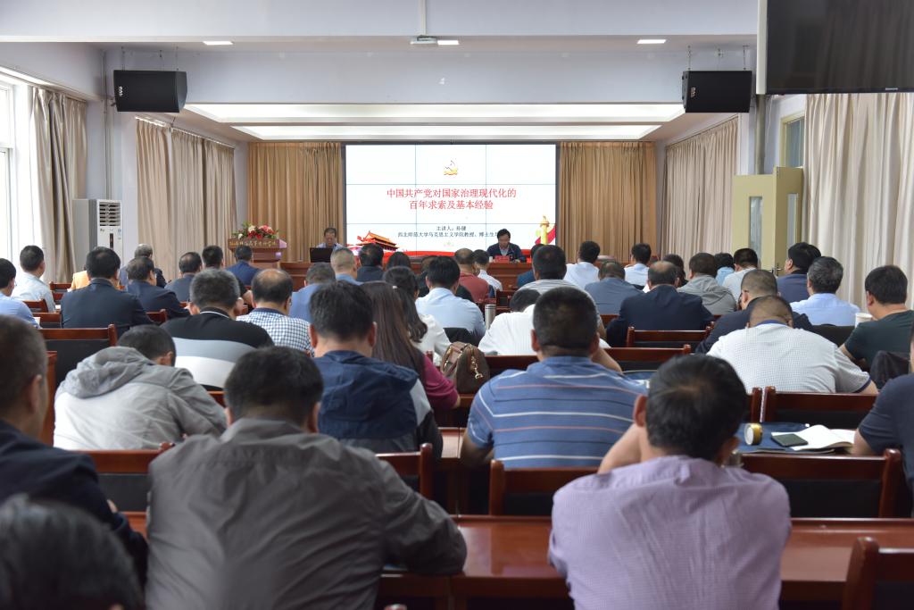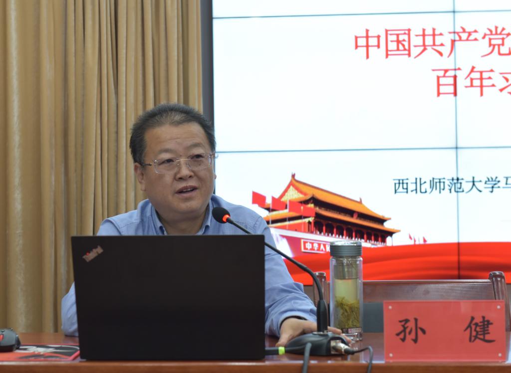 5月21日下午,西北师范大学马克思主义学院副院长、城市社会治理研究院秘书长、教育部高校思想政治工作队伍培训研修中心(西北师范大学)业务副主任、博士生导师孙健教授应邀做客米兰官网“乐恺大讲堂”,为校长李艳红、党委副书记王莹成,副校长张建辉、任永峰、王录全、张勇,纪委书记、监察专员镡旭东等党史学习教育读书班全体学员、教师党支部书记、学生党支部书记作了题为“中国共产党对国家治理现代化的百年求索及基本经验”的辅导报告。报告会由王莹成主持。