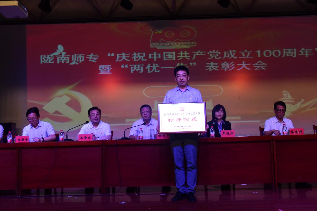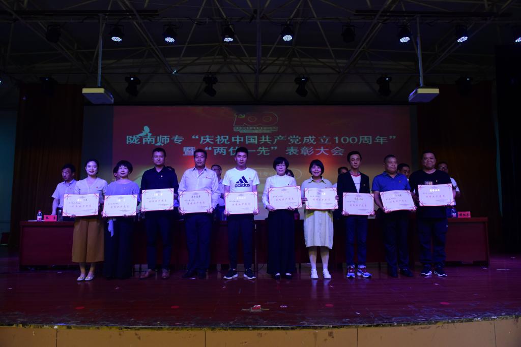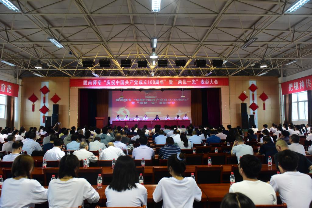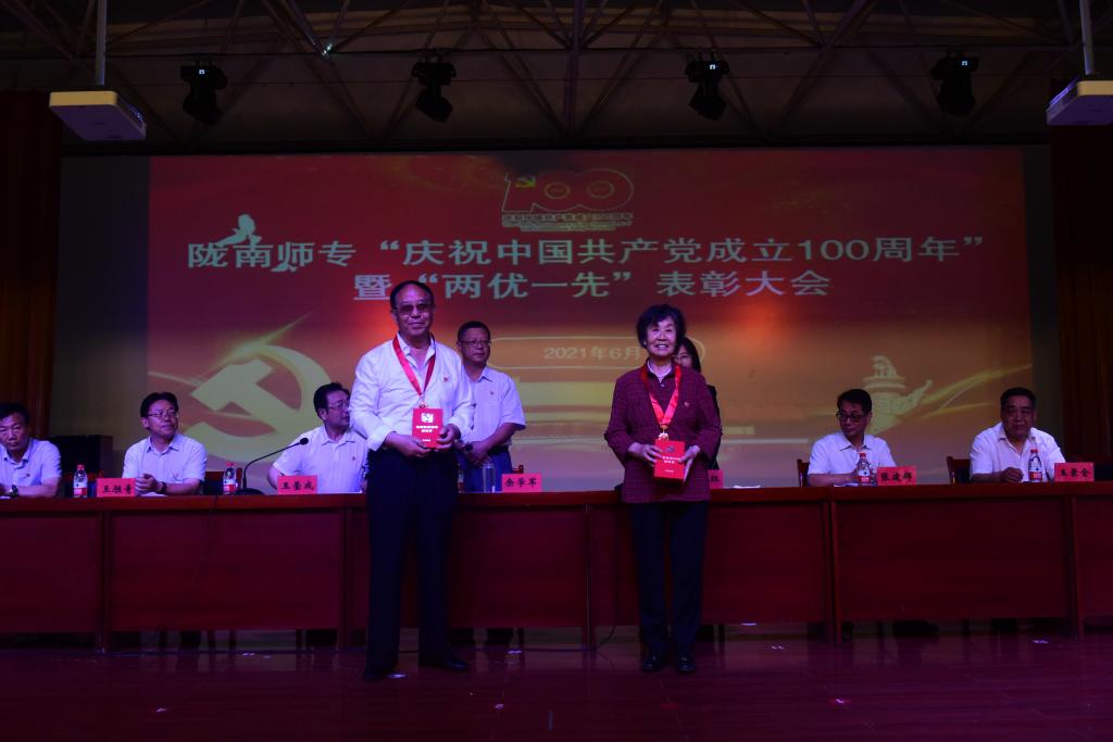 王莹成宣读了《中共陇南师范高等专科学校委员会关于2021年度“两优一先”表彰决定》。
