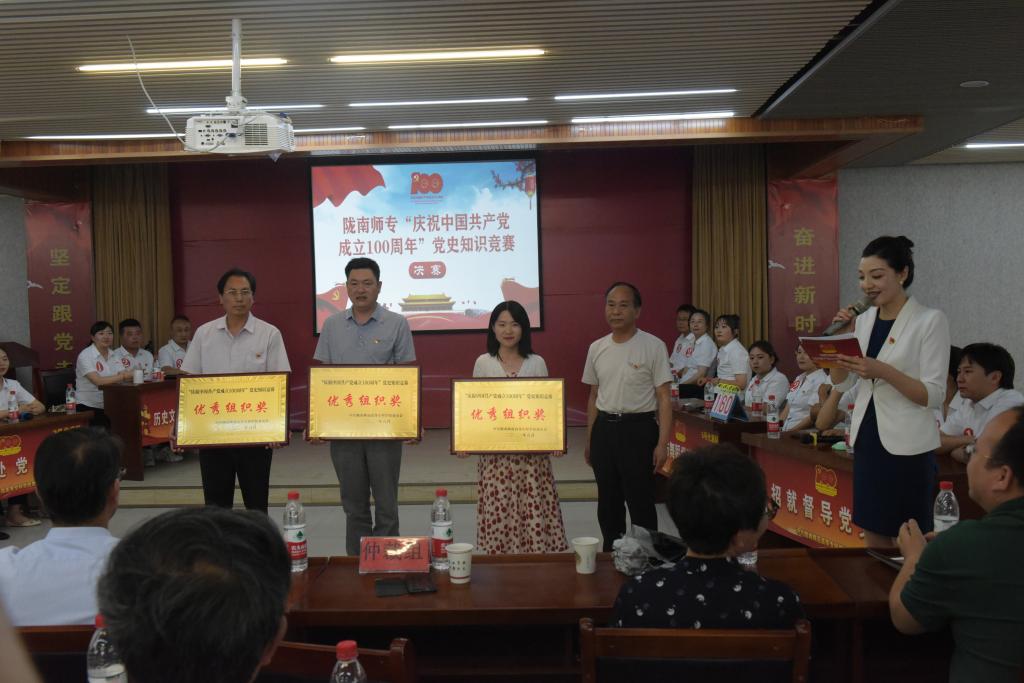 此次党史知识竞赛由组织人事处主办、团委承办,分为初赛和决赛,学校29个基层党组织通过初赛决出6支代表队参加今天的决赛。竞赛设三个环节,分别是必答题、抢答题和风险题。决赛中,现场气氛活跃,选手答题积极、认真,不但展现了良好的精神面貌,还展现了丰富的理论素养。为了增添乐趣缓解比赛的紧张氛围,中间插入了互动环节,还为参与互动的观众,准备了礼品。经过各代表队、选手们的激烈角逐,农林技术学院党总支代表队获得一等奖,历史文化与旅游学院党总支代表队和国资保卫处党支部代表队获得二等奖,财务处党支部、招就督导党支部和音乐与舞蹈学院党总支代表队获得三等奖。