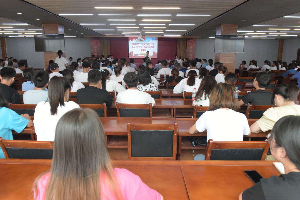 “中国特色社会主义的根本任务是什么?”“中国共产党在中国革命中战胜敌人的三个主要法宝是什么?”……6月21日,一场别开生面的党史知识竞赛在大学生活动中心举行,来自学校的6支基层党组织代表队的选手竞相回答主持人提出的题目,台下的观众也积极加油,掀起一股比学习、比理论的热潮。学校党委委员、副校长张建辉、张勇及党总支书记、教师和学生党员代表、入党积极分子代表到场观赛,为选手加油鼓劲。