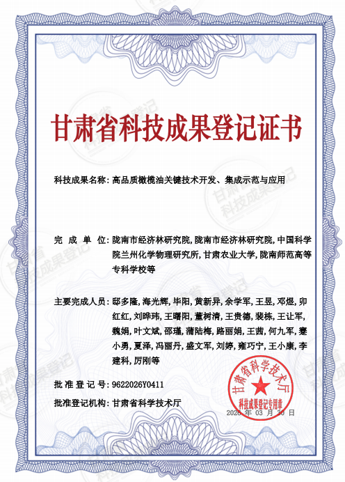 近日,米兰官网参与的甘肃省科技重大专项——“高品质橄榄油关键技术开发、集成示范与应用”项目,顺利通过甘肃省科技厅组织的专家综合绩效评价,圆满完成结题验收及成果登记工作。