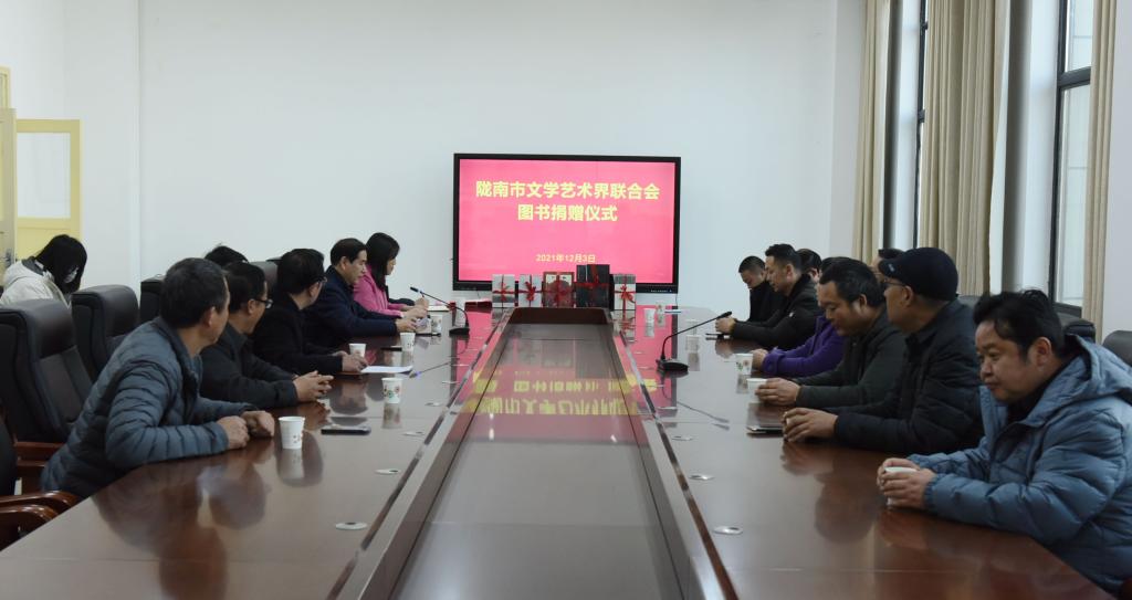 陇南市文联向米兰官网捐赠图书400册,张红霞、市文联副主席刘满园个人分别捐赠图书25册、20册。